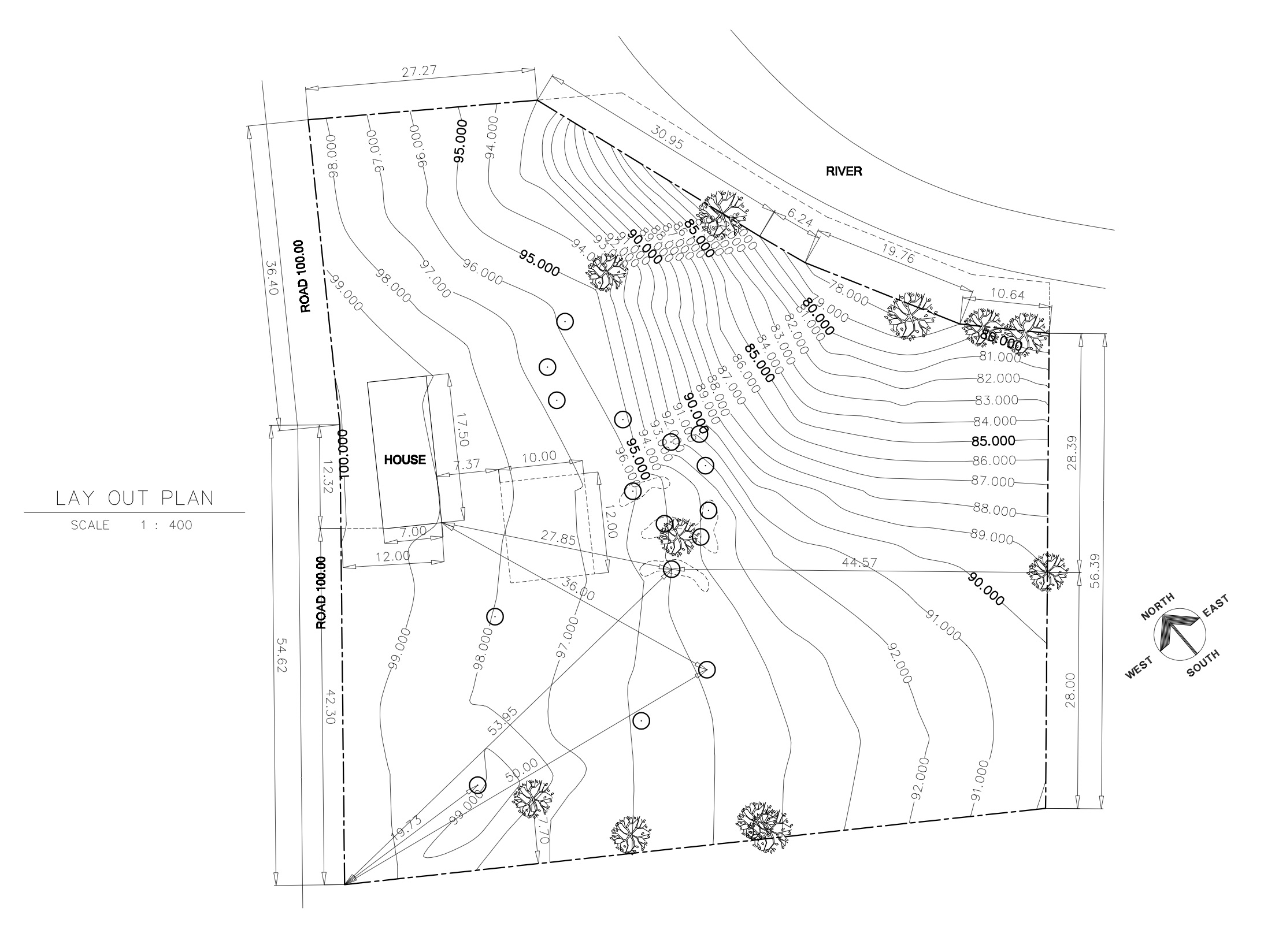 For small to medium gardens it is possible for SBGD to conduct the survey. However, for large or more complex sites an external surveyor may be required to provide a full topographic survey.